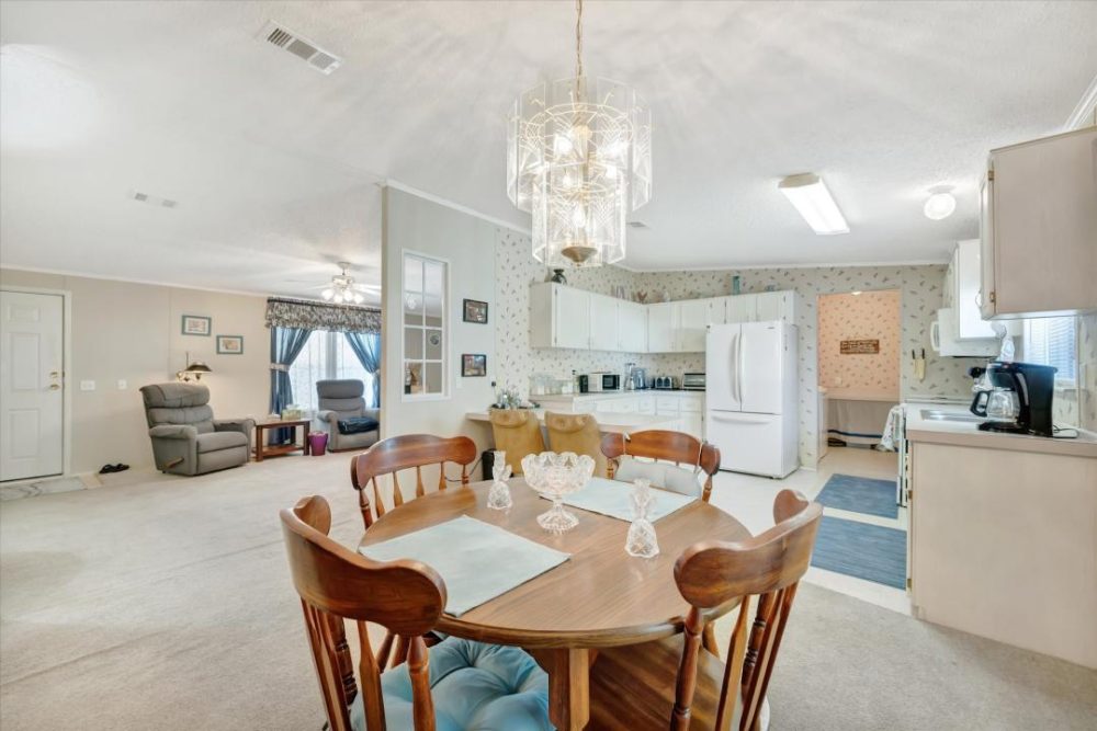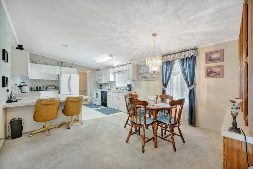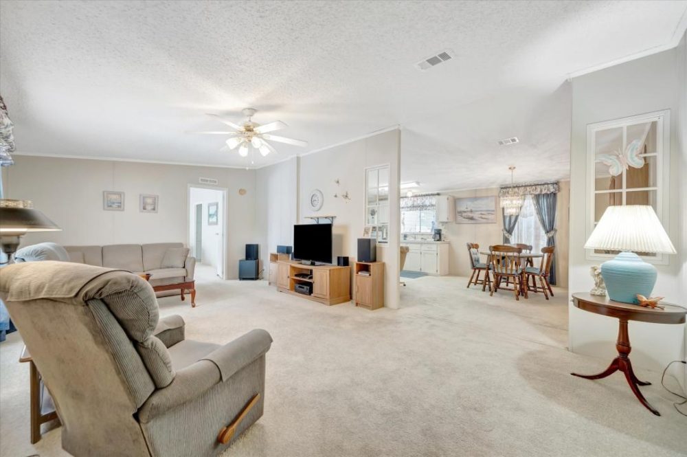 Make sure you take the time to click on the Virtual Tour and Welcome to Caribbean Isles Residential Cooperative. This home is a large 2 bedroom, 2 bath beautifully decorated FURNISHED home. As you enter it opens up to a large living room with built-in Electric Fireplace. That leads to the Dining Rome with beautiful chandelier. The Primary Bedroom has a large Walk-in Closet with an Ensuite. The Architectural Shingle Roof, the HVAC Unit and the Duct Work under the home was just replaced in October of 2024. Laundry/Mud Room is just inside the rear entrance. The home is low maintenance, furnished and well-maintained. Caribbean Isles Residential Cooperative is a highly desired community to live in. It is a VERY Active 55+ community. From Shuffleboard and Bocce Ball to Corn Hole and Horseshoes. We welcome Golf Carts and several times a year we gather and decorate for Parades. The Clubhouse is used for Dances, Games, Dinners and more. In the Clubhouse we have a well-stocked Library and a large Craft Room. The Game Room has 3 Billiard Tables, 2 Poker Tables, a Bar Shuffleboard with 2 Dart Boards. Don’t miss this opportunity.